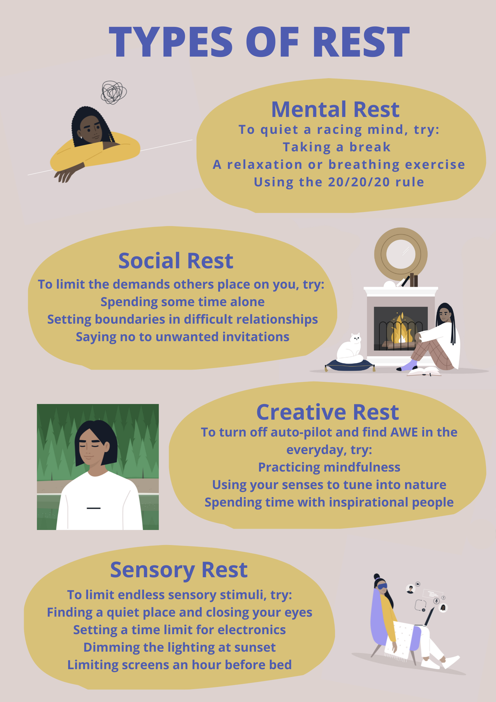 Napansin mo ba na nakakakuha ka ng sapat na tulog, ngunit hindi ka pa rin nakakaramdam ng pahinga? Ang pagtulog at pahinga ay hindi magkatulad, at ang pagtulog ay hindi nagbibigay ng lahat ng iba't ibang uri ng pahinga na kailangan natin.
